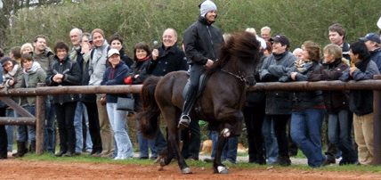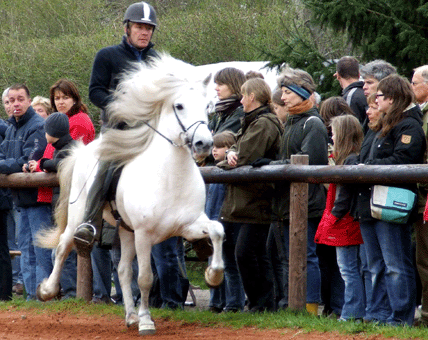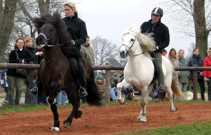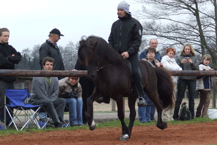 Highlight der Veranstaltung der Auftritt des aus Dänemark angereisten mehrfachen Weltmeisters Johann R. Skulason mit Hvinur. Der Zuschauer durfte dem Meisterpaar beim Tölttrainig zuschauen. Eine beeindruckende Vorstellung.