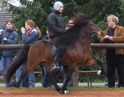 Ein erster kleiner Höhepunkt war der von Frauke Schenzel vorgestellte Tenor von Birkenlund. Vater von Tenor ist der Orri-Sohn Álfadans frá Ingólfshvoli. Mütterlicherseits geht die Abstammung auf Dagur frá Kjarnholtum I zurück.
