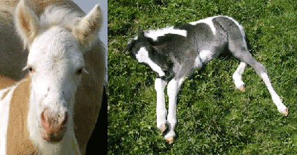 | Das Rappstutfohlen mit Stern (li.) und das Falbstutfohlen (re.). |  |