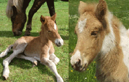 | Der Vater dieser Fohlen: Óðinn von Hafnersholt (li.) und sein erster Sohn, ein Falbhengstfohlen (re.). |  |