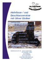 Hufpflege- und Beschlagsseminar mit Oliver Bädker statt. Themen sind u.a.: der Huf und die Hufformen, Krankheiten am Huf, Spezialbeschlag für Gangpferde, orthopädischer Beschlag zur Hufkorrektur. Das Seminar kostet 100 Euro pro Teilnehmer; eigene Pferde können nach Absprache mitgebracht werden. Hier können Sie sich den