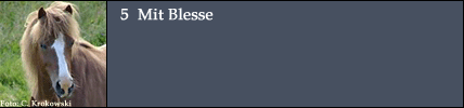 0 Einfarbig 1 gescheckt 2 Mit Stern 3 Mit Schnippe 4 Mit Stern und Schnippe 5 Mit Blesse 6 Gestiefelt (ausschließlich) 7 Socken (ausschließlich) 8 Stern, Schnippe o. zwei Sterne zusätzlich gestiefelt o. Socken 9 Blesse zusätzlich gestiefelt oder mit Socken