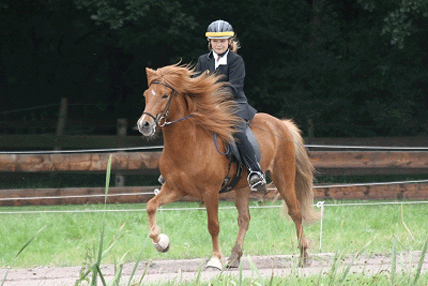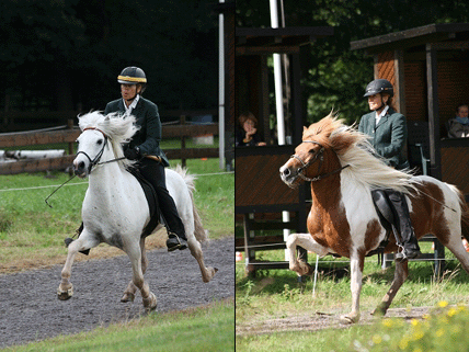 |  | Marlise Grimm auf Gáski frá Eyrarbakka (li.) und auf Friða vom Basselthof (re.). |  |