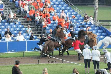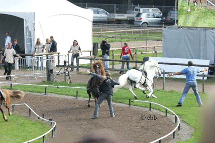 Auf dem 1. Bild sieht man die lose Absperrung. Die weiteren Szenen folgten dann (ein paar mehr Fotos werde ich noch auf unserer homepage www.Isileidenschaft.de veröffentlichen). Man kann wirklich von großem Glück reden, dass hier weder Reitern noch Pferden etwas passiert ist!!! Die Konsequenz aus dem Zwischenfall wurde sofort gezogen: Die anderen Ehrungen fanden im Grün statt und man entfernte zum Teil die Absperrungen, bevor die Pferd-Reiterpaare einritten.