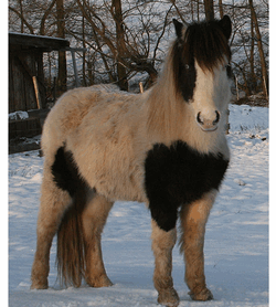 Dann habe ich gerade ganz aktuell Fotos aus Island bekommen von unserem Neuzugang Skeifa (Falb-Helmscheckstute).