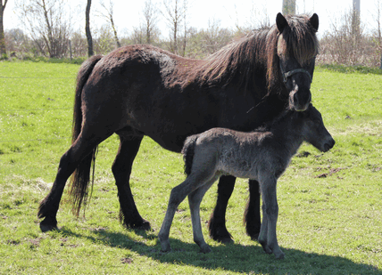 Dieses hübsche Fohlen stammt aus der Zucht von Sybille Wiendieck, die uns berichtet: "Am 17.4 kam unser erstes Fohlen zur Welt. Mindestens 2-3 Wochen zu früh und klein, aber zum Glück sehr kernig. Vater ist der Braunfarbwechsler Isak vom Grönholm, Mutter ist Valka fra Skidbakka. Der kleine Hengst heißt
