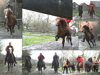 Týr selbst wurde zunächst in schöner Manier als Handpferd von Týrson vorgestellt. Später nahm Andreas Trappe noch ein weiteres Handpferd hinzu: den Rapphengst Teitur vom Lindenhof, ebenfalls ein Nachkomme von Týr. Folglich konnten die Zuschauer nun ein schickes Dreiergespann mit den zwei Rappen Teitur und Týr als Handpferde vorneweg und in der Mitte dahinter den Fuchs Týrson als Reitpferd bestaunen. Für eine angenehme Überraschung sorgte der bewährte Hengst Fylkir frá Akureyri, der sich frisch, kernig und mit scheinbar endloser Ausdauer im rasanten Tölt zeigte - sehr zur Freude seines Reiters Hendrik Gepp, IPZV-Trainer B auf dem Lindenhof. Auch ein Exot hatte sich unter die Islandpferde gemischt: der junge Paso Perunano Hengst Sureteme mit der Bereiterin Jeanette Paland im Sattel. Er soll künftig für einen Nachwuchs von großen Töltern sorgen.