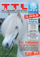 Materialprüfung nach IPO am 23./24. April 2005 auf Störtal. Neben den Materialprüfungen für Jungpferde und gerittene Pferde sind Futurity-Prüfungen ausgeschrieben (