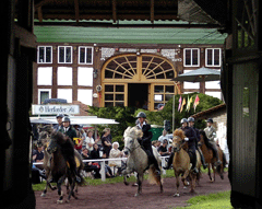 Wie vielfältig eine Reitschul-Ausbildung auf und mit Islandpferden sein kann, dies erlebten die zahlreichen Gäste beim Tag der offenen Tür auf dem Islandpferdehof Olgemöller in Ostbevern (Münsterland). Voltigieren, Springen, Freiarbeit am Boden, Tölt, Rennpass, Reiten ohne Sattel, eine Muster-Reitstunde, Quadrillen mit tollen Kostümen und vieles mehr wurden am heutigen Sonntag, 23. Mai 2004, gezeigt.