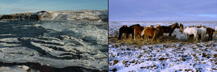 eindrucksvolle (und eisige) Impressionen aus Island. Sie schreibt dazu: "Die Pferde des Ferienhofes Egilsstadir1 - darunter auch mein Pferd auf Island, Fuchsschecke Prins frá Beinárgerði - relaxen im Moment noch auf der Winterweide um viel Energie für die Gäste der nächsten Saison zu tanken. Auch die zweibeinigen Bewohner nutzen die ruhige Zeit zur Entspannung im HotPot - natürlich erst nachdem die Schneemengen vor dem Hauseingang beseitigt und die Pferde mit Heu versorgt wurden. :-)) Das Bad im HotPot ist gerade im Winter ein besonderes Erlebnis, wenn man von Schnee umgeben im heißen Wasser sitzt. Viele weitere Bilder vom Winter im Süden Islands, aber auch aus der vergangenen Urlaubssaison findet man auf der Homepage des Hofes
